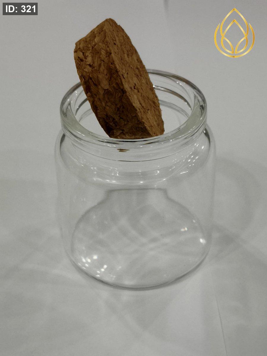 وعاء زجاج صغير مع غطاء خشبي ارتفاع 5سم قطر 4.5